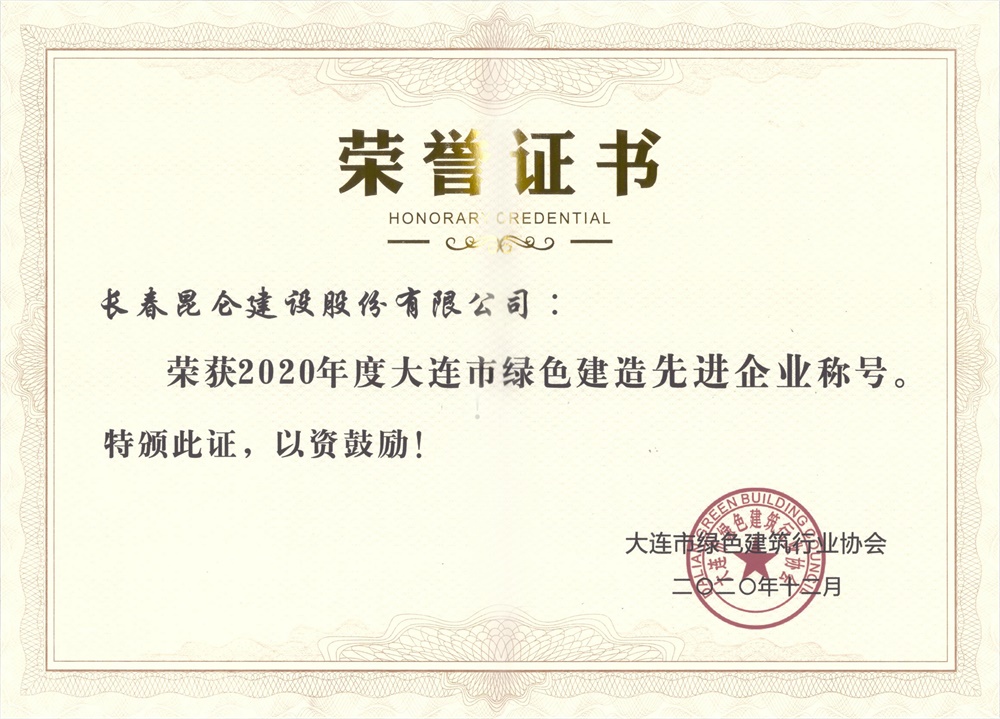 2020年度大连市绿色建造先进企业