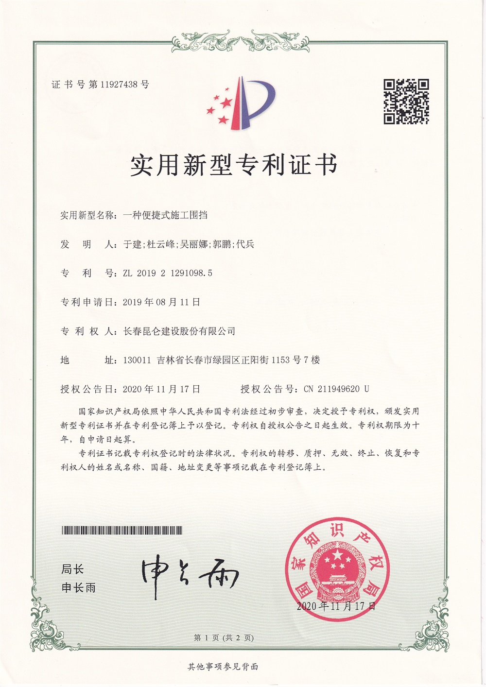 专利证书